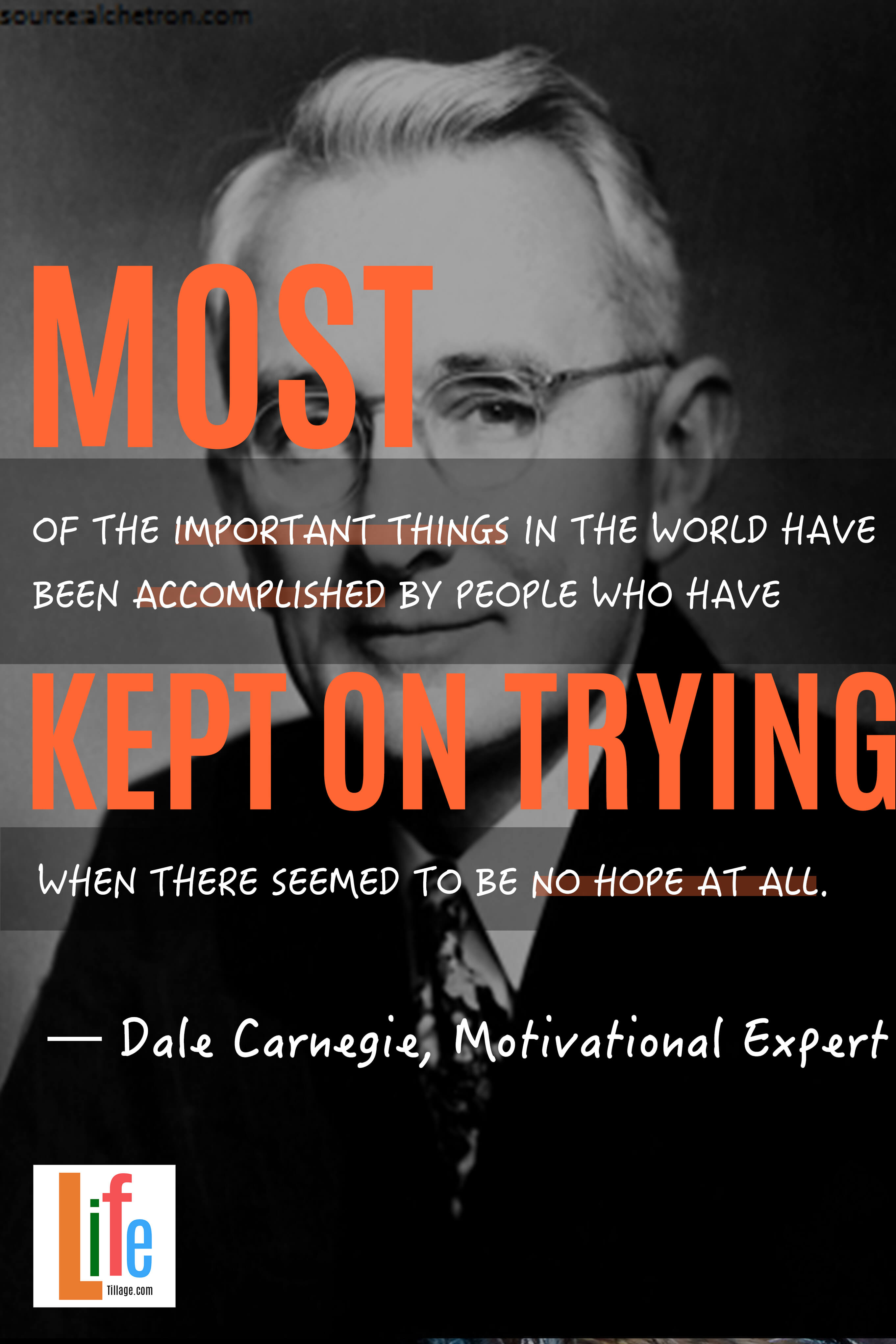 “Most of the important things in the world have been accomplished by people who have kept on trying when there seemed to be no hope at all.”